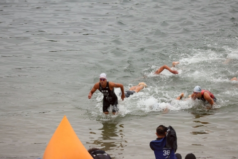 • 周回毎に浜に戻りコールを行います。浜に上がり各自で用意した補給食や給水を取るなど休憩は自由です。