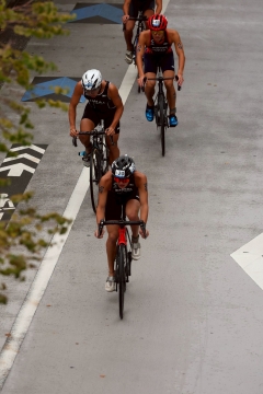 男子・大浦選手はスイム折り返し3位で通過、バイクトランジションも先頭集団で通過しました。